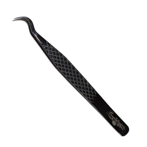 Lisa Lisa is a busty, top-heavy shaped tweezer with a large sharp rounded curve perfect for picking up volume fans without smashing into the tweezer, one of our LUXURY BLACK PLASMA line.